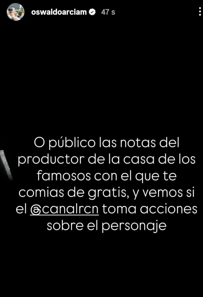 Por otro lado, Oswaldo Arcia también aseguró que La Toxi Costeña habría invertido dinero en entrevistas en algunos medios de Bogotá con el objetivo de reforzar su imagen pública tras su paso por el reality.
