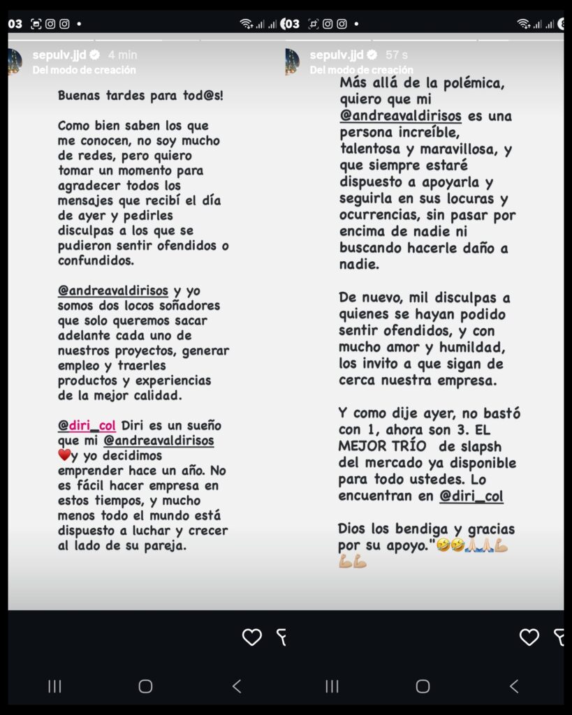 Todo comenzó cuando los seguidores notaron que Andrea y Daniel habían dejado de seguirse y que las fotos donde aparecían juntos habían desaparecido.A esto se sumó un mensaje publicado por él, que muchos interpretaron como una indirecta fuerte sobre una posible traición:“No le bastó con uno solo… entre cielo y tierra no hay nada oculto.”